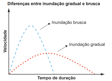 A desproporção de velocidade e tempo de duração nos tipos de inundação destacados é condicionada pela